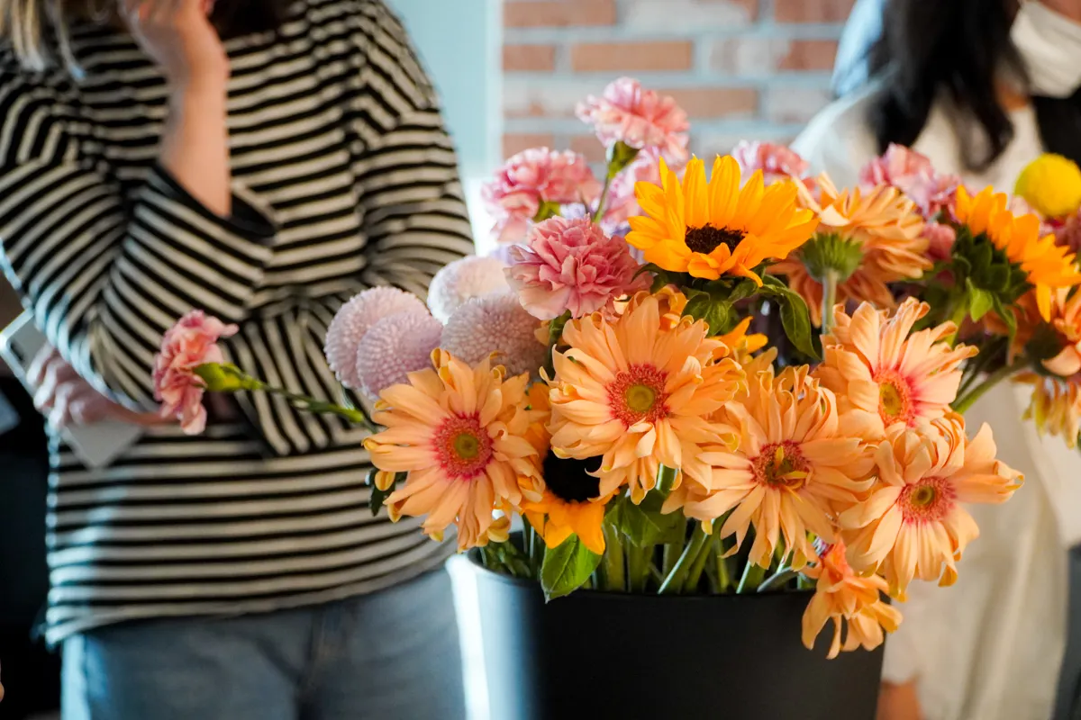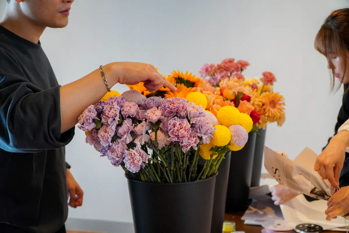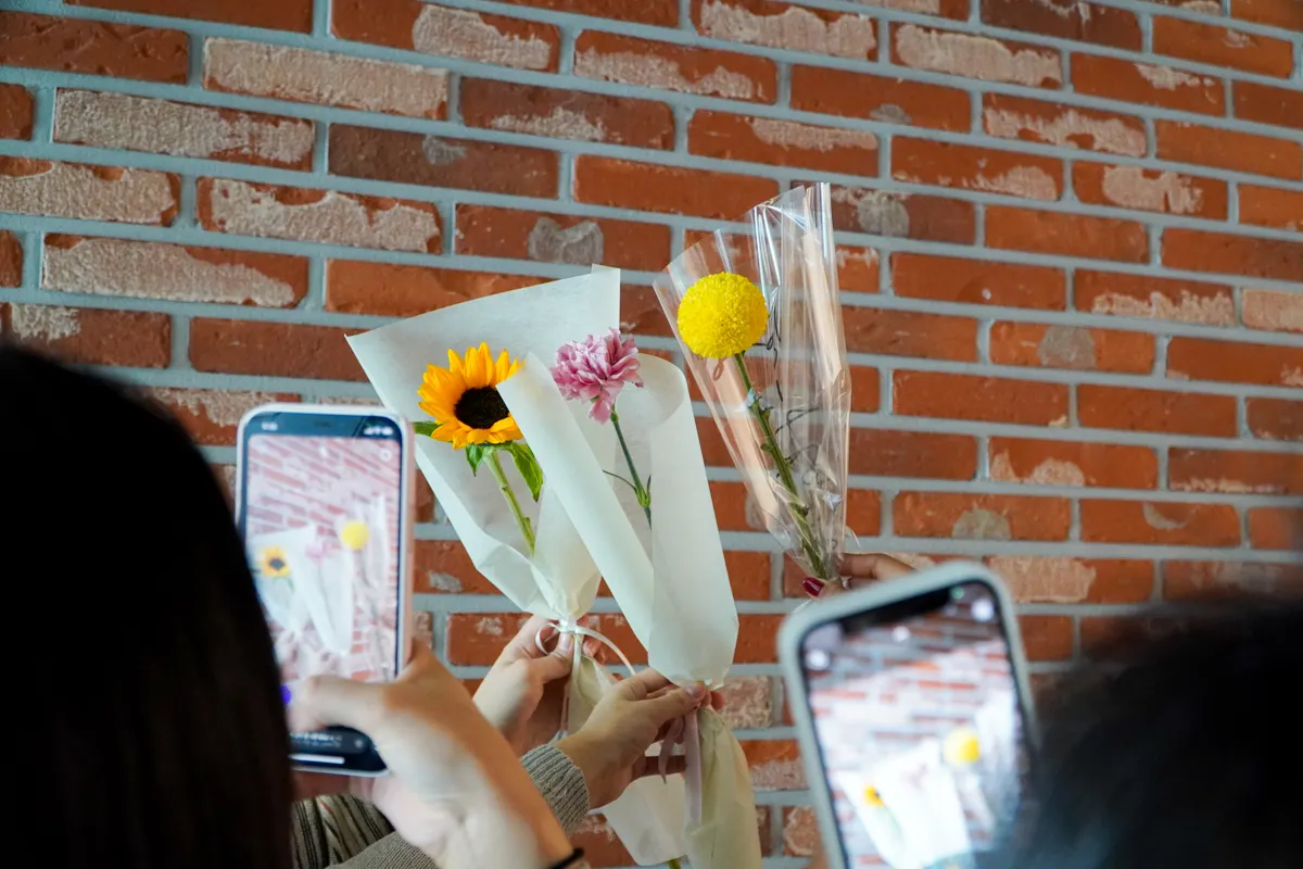 퐁퐁국화, 카네이션, 해바라기, 장미, 거베라 등 다양한 종류의 꽃 중 하나만 골라야 하는 게 고민이었겠죠? 그 탓에 줄이 조금 길어지기는 했지만