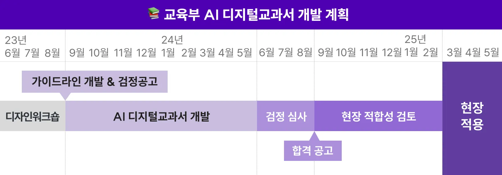 2023년 5월, 교육부가 AI 디지털교과서 도입 계획을 발표했어요. 오는 2025년 초등 3~4학년, 중1, 고1을 시작으로 영어·수학·정보 과목에 우선 도입하고, 이후 학년과 과목을 확대해 나갈 계획인데요.