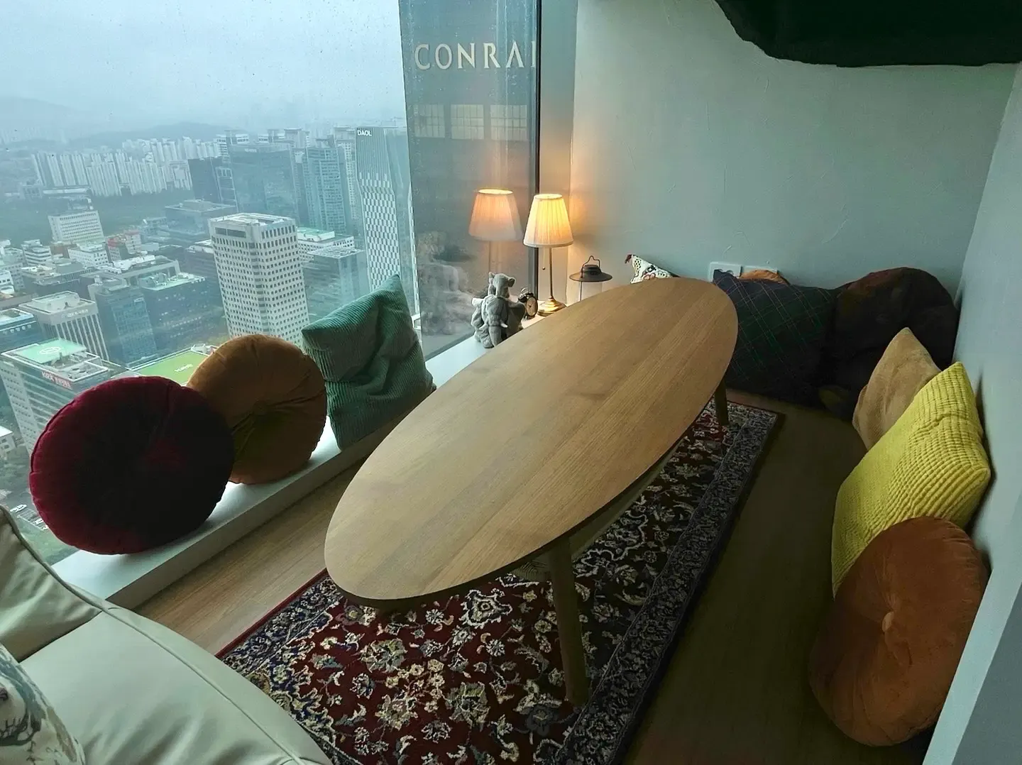 라운지를 자주 찾다 보니 저만의 라운지 루틴도 생겼어요. 먼저 푹신한 소파에 앉아 몸의 긴장을 풀어낸 다음, 창밖에 펼쳐져 있는 파란 하늘과 넓디넓은 한강을 바라봅니다. 한참 ‘한강멍’을 때리다가 풀어야 할 문제를 생각하면요. 분명 방금 전까지 어려워서 머리를 싸매고 있던 일들이 술술 풀릴 것만 같다는 자신감이 샘솟아요. 정말 신기한 일이죠? 이래서 제가 라운지를 찾을 수밖에 없다니까요.