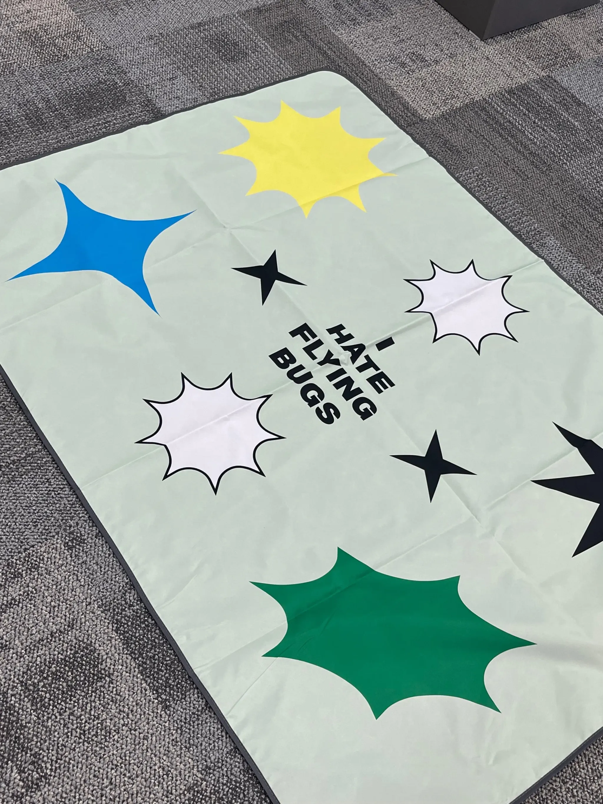 아이헤이트플라잉버그스가 여의도로 일터를 옮겼잖아요. 5분 거리에 여의도 공원이, 10분 거리에 여의도 한강 공원이 있는 곳으로요. 새 일터에서 새 마음으로 일하실 수 있도록 이사를 함께 기념하고 싶은데, 금방 사라지거나 잊혀지는 선물을 드리고 싶진 않았어요. 그래서 “조금은 오래 쓸 수 있는, 그러면서 꾸준히 기억할 수 있는 선물로는 뭐가 있을까?” 고민하다가 피크닉 매트를 떠올렸답니다.
