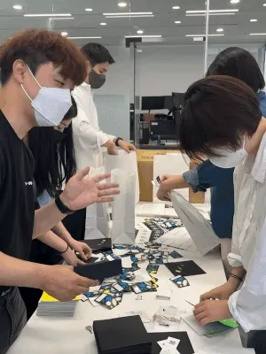 우당탕탕 이사를 마치고 드디어 새 사무실 첫 출근날! 피플팀이 모두 달라 붙어 하얀 쇼핑백 250개를 포장했어요. 메시지 카드를 봉투에 넣고, 스티커를 붙이고, 피크닉 매트와 함께 쇼핑백에 넣은 뒤에 입구를 스티커로 봉하고.. 철저한 분업의 승리였습니다. 함께하니 즐거운 건 덤이었고요.