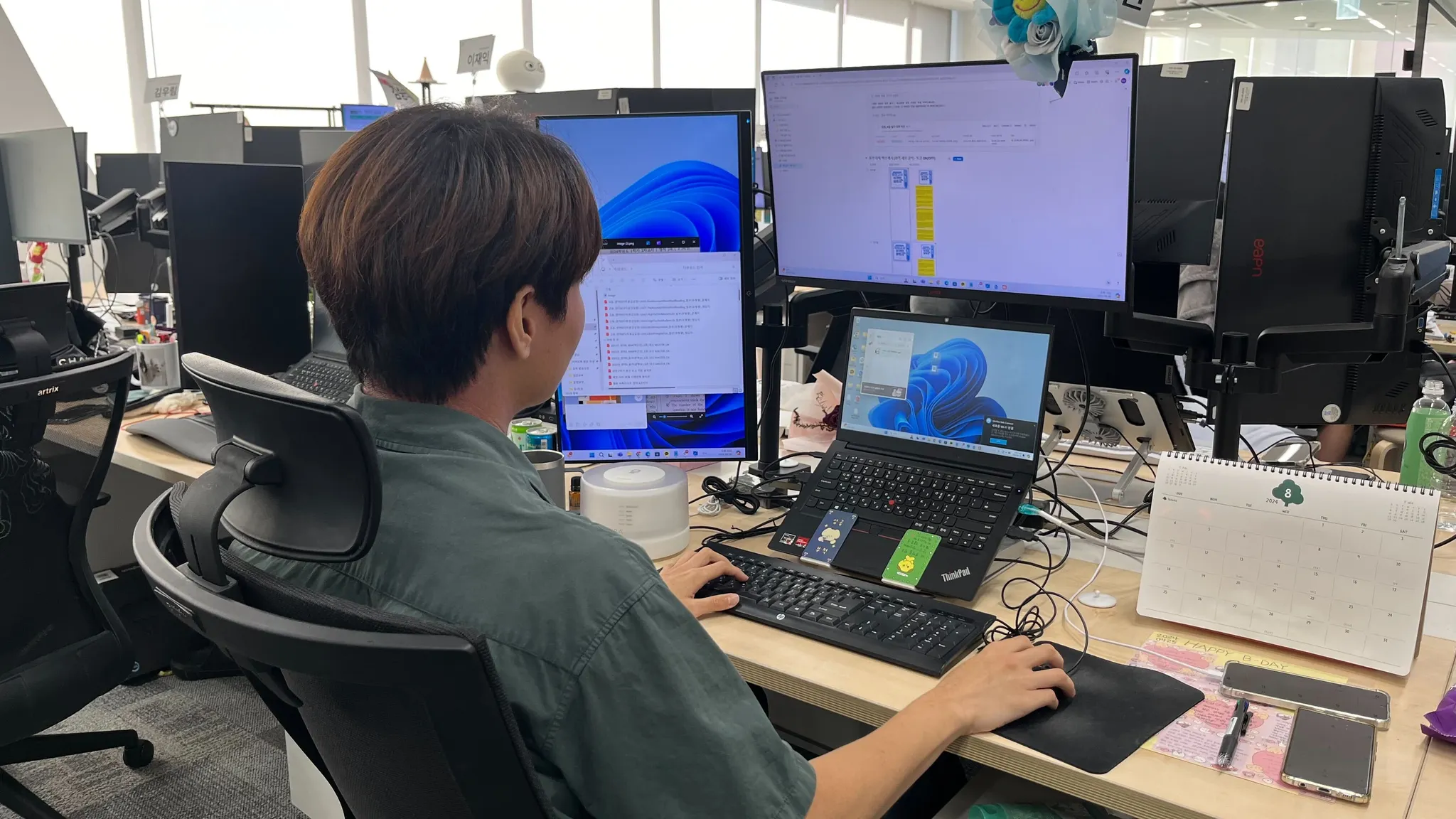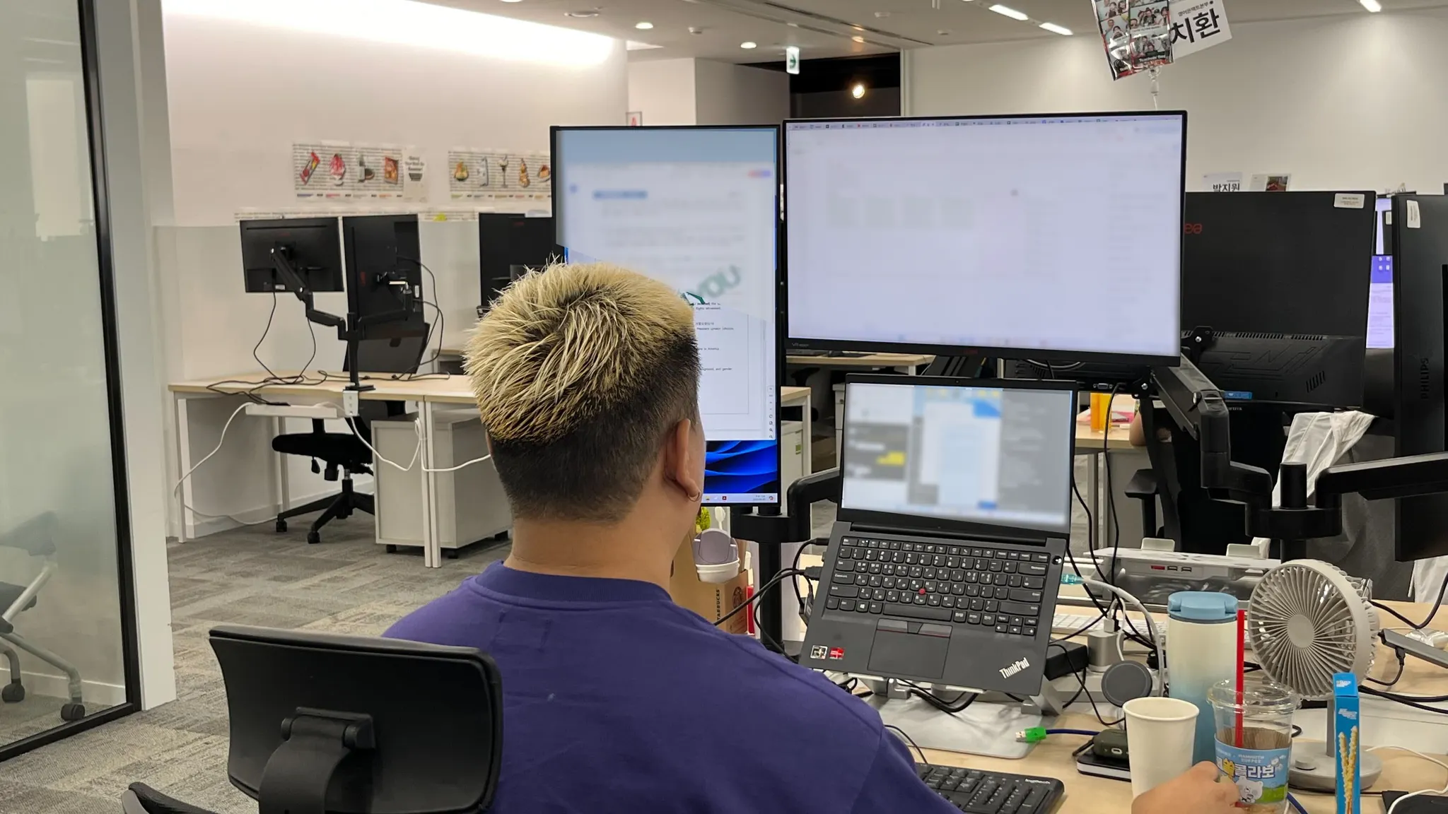 선생님들이 가장 덜 바쁘다는 금요일 오후에 찾아갔었는데요. 태완님은 이때도 정신없이 수업 준비를 하고 계셨습니다.