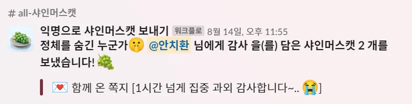 앞서 살짝 말씀드린 것처럼 아이헤이트플라잉버그스에는 멘토-멘티 프로그램이 있습니다. 신입 선생님들이 더 빨리 적응하고, 좋은 선생님이 될 수 있도록 돕는 방법 중에 하나죠. 태완님이나 치환님처럼 좋은 무기를 많이 가지고 있는(?) 팀원들과 신입 팀원을 연결해주고, 노하우를 전수해 주는 시간을 보내도록 지원합니다. (풍성한 만남을 위해 법카를 드려요..