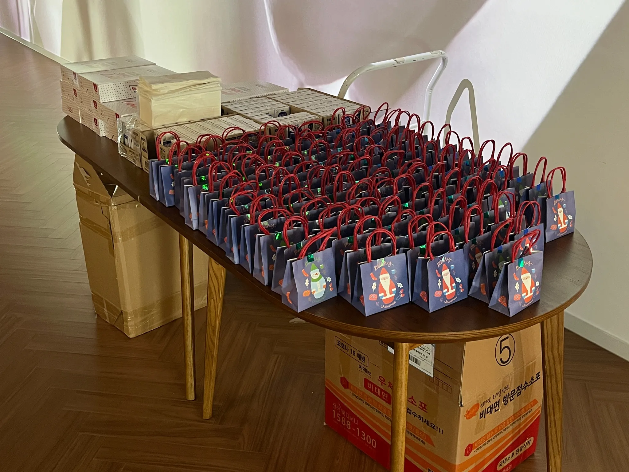 도넛과 선물을 준비해 놓고 팀원들을 기다렸습니다.