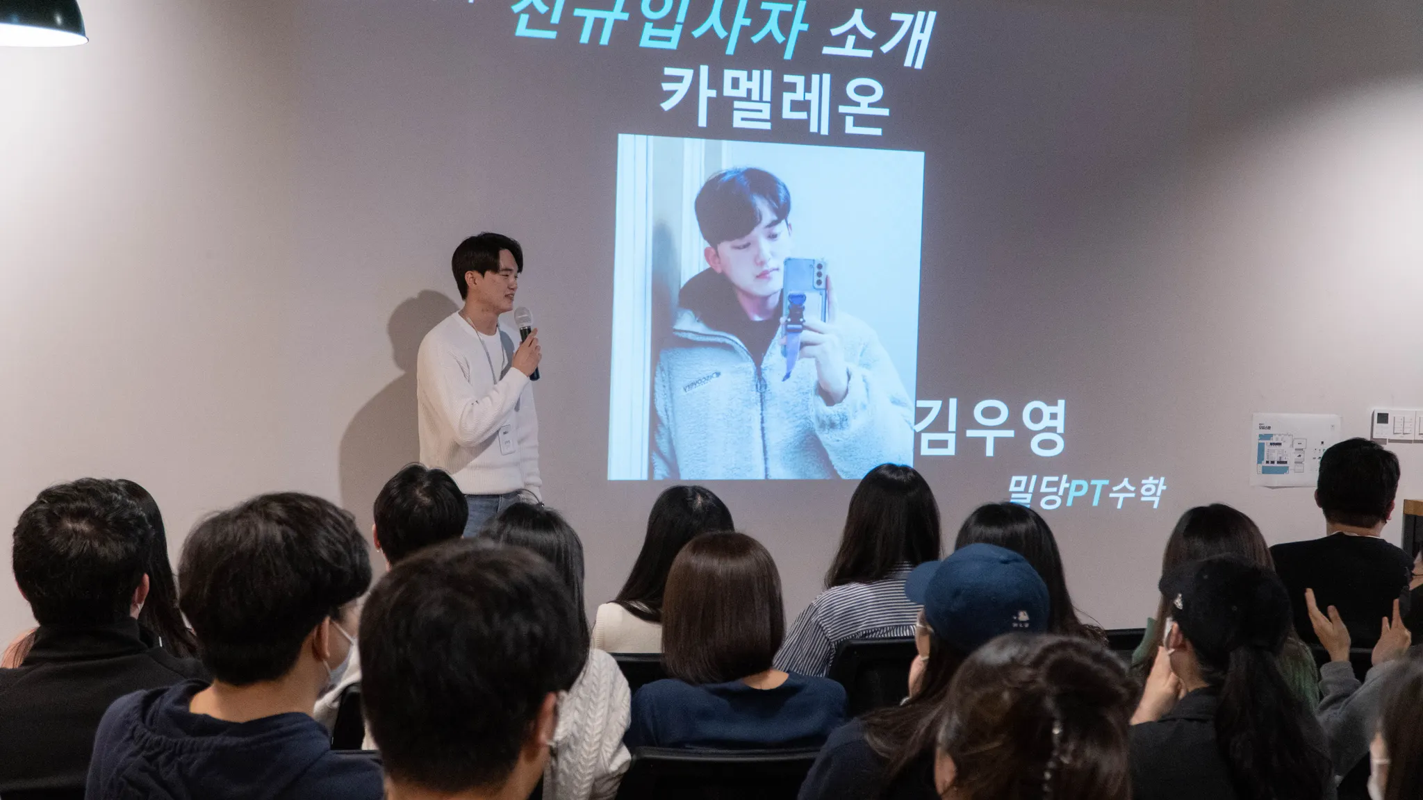밀바시 주제는 그때그때 달라요. 어느 날은 옷 잘 입는 꿀팁에 대한 이야기인가 하면, 어느 날은 인사이트를 잘 쌓아 남들에게 전하는 방법이 주제가 되기도 합니다 재미있는 점은 팀원들에게 투표를 받아 주제를 정한다는 점인데요. 직접 고른 주제를 들을 수 있어서일까요? 밀바시를 보는 팀원들의 집중도와 호응은 엄청나답니다. 끝나면 박수갈채가 쏟아질 정도