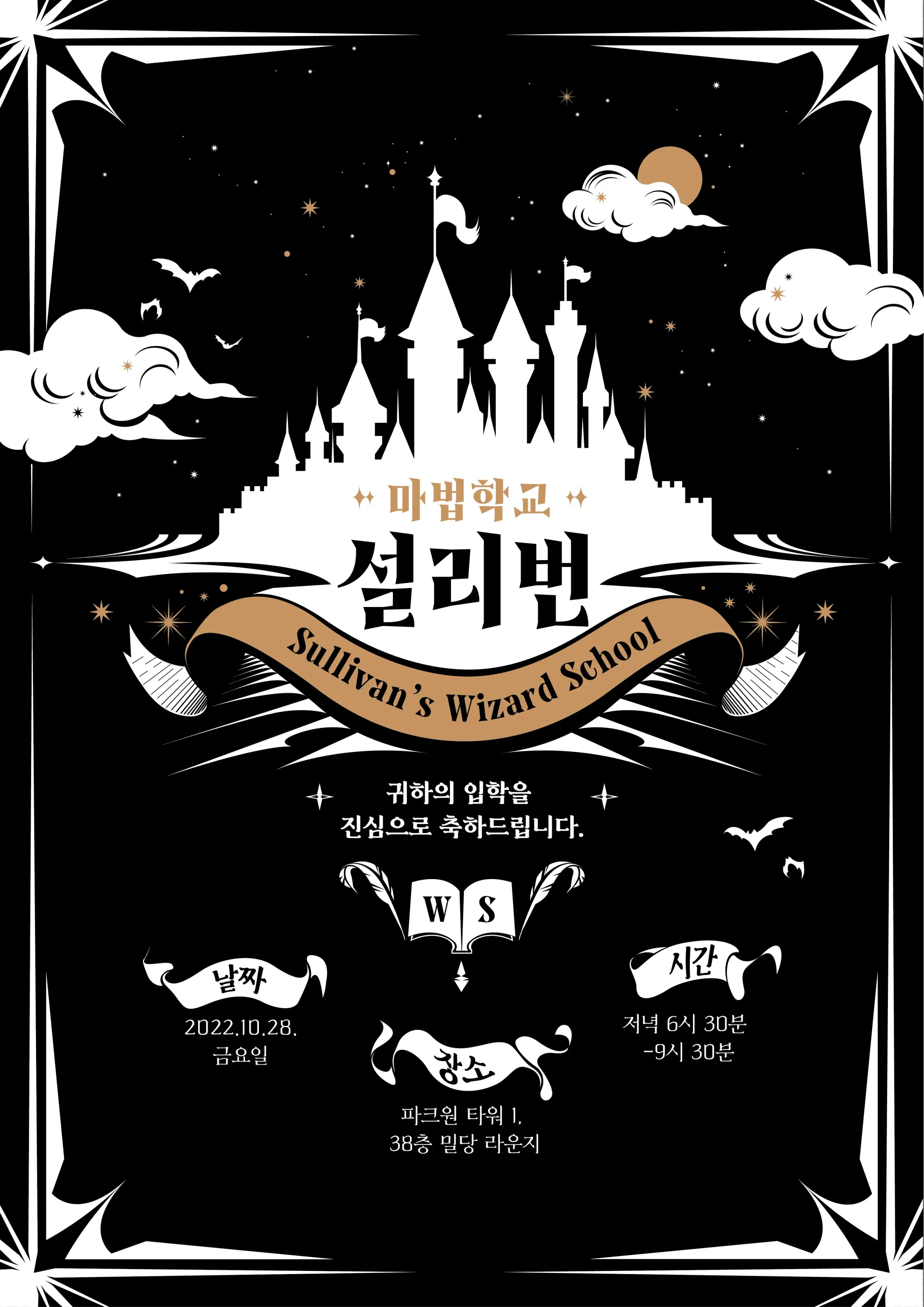 그렇게 38층 미니 라운지는 설리번으로, 39층 미니 라운지는 파브르로 각각 이름을 지었는데요. 블로그를 자주 들어오신 분이라면 지난 5월, ‘파브르’라는 이름으로 칵테일바를 열었던 것을 아실 거예요. ‘파브르로 멋진 행사를 열었으니, 이번엔 설리번으로 해줘야 매너가 아닐까’라며 엉뚱한 고민을 하던 찰나에 ‘마법학교’란 단어가 떠올랐습니다. 아주 찰떡이에요.
