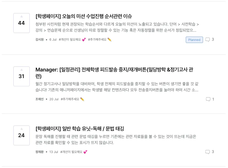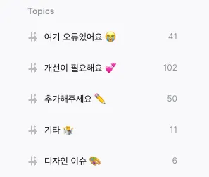 이렇게 정리를 하니 어떤 의견들을 시급히 반영해야 할지 알 수 있었고 1, 2단계로 분류된 문제에 우선순위를 높게 두고 해결했습니다.
