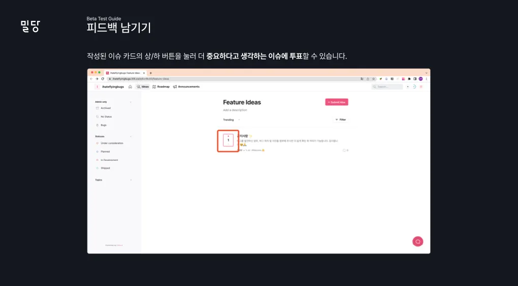 다른 팀원이 쓴 피드백에 투표도 할 수 있도록 했어요.