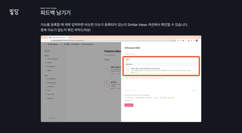 아이헤이트플라잉버그스 팀을 선택한 저의 이야기, 잘 보셨나요? 이 글을 쓰면서 저도 아이헤이트플라잉버그스 팀에 온 이유, 밀당 팀에서 한 일들을 돌아볼 수 있었던 것 같아요. 아이헤이트플라잉버그스 팀에 오길 잘 했다는 생각을 다시 하기도 했고요.
