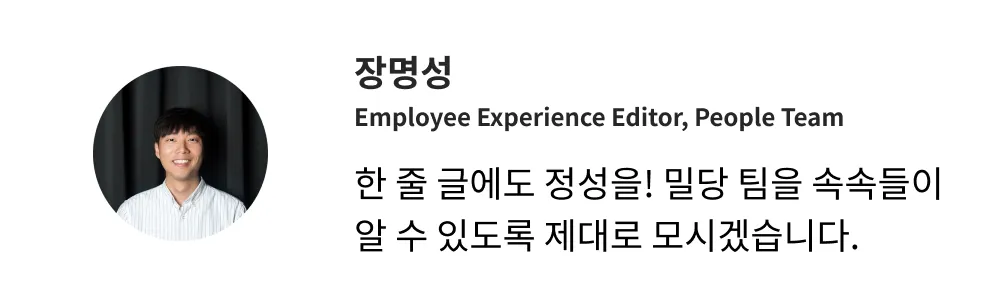 지난 8월, 130명 남짓이던 회사에 합류해 가장 어려웠던 건 직원들의 이름과 얼굴을 외우는 일이었습니다. 아무도 외우라고 강요하진 않았지만, 누가 누군지 잘 모르면 제가 만든 콘텐츠를 나눠 줄 때나 사내 메신저로는 하기 복잡한 이야길 전하려 할 때마다 사무실을 빙빙 돌아야 했으니까요.