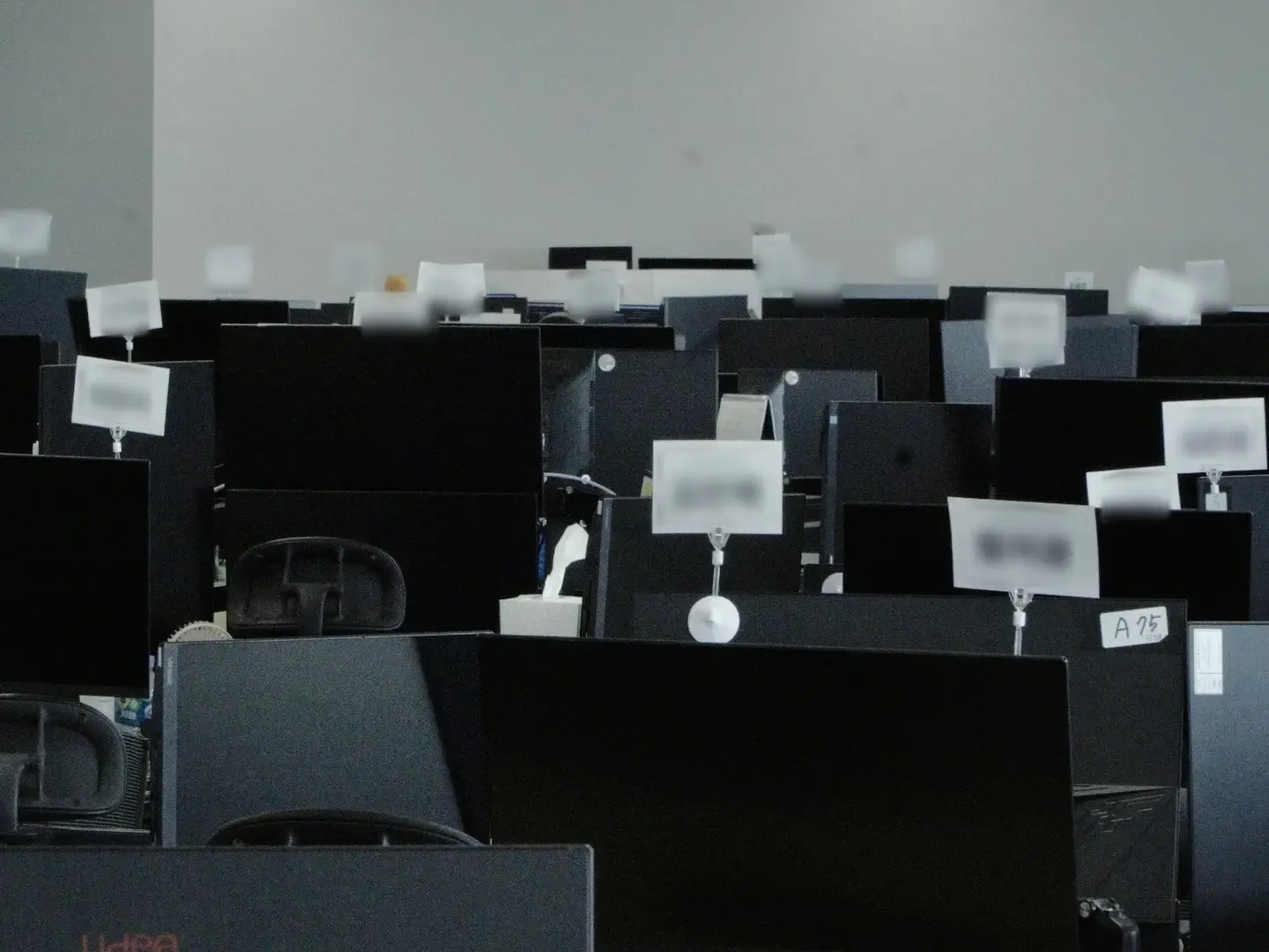 검은 모니터 위 하얀 이름표들입니다.