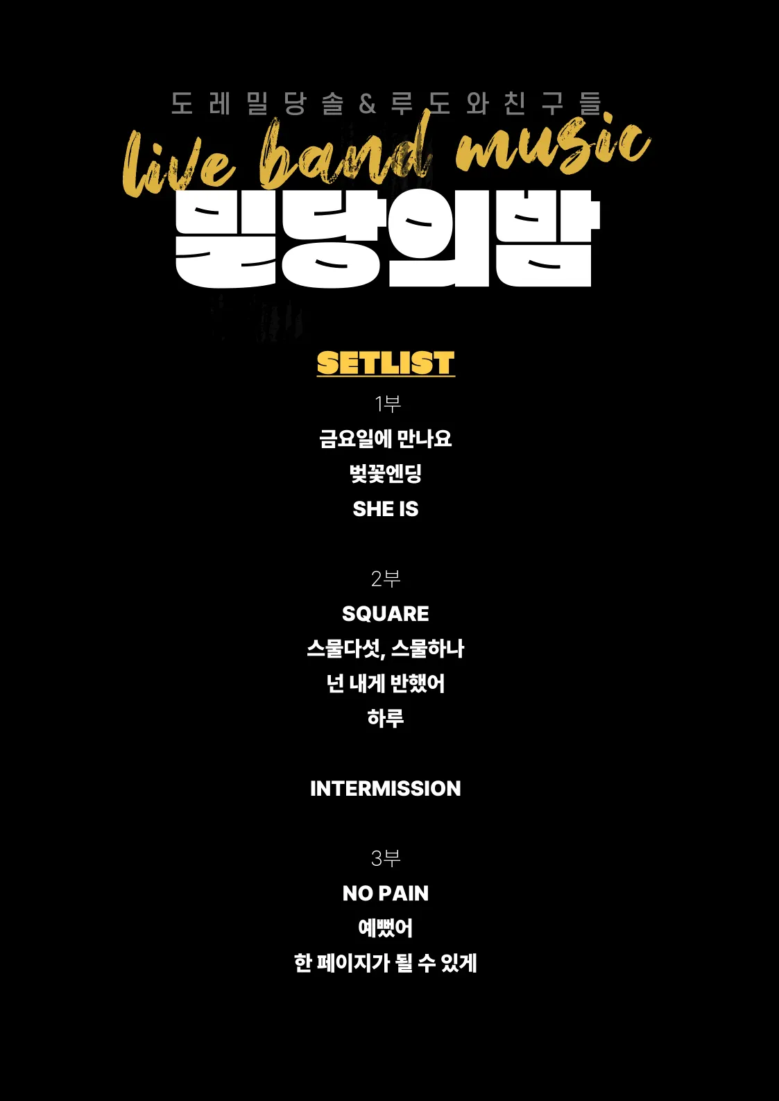 아이헤이트플라잉버그스 팀원들이 결성한 밴드답게 공연 이름도 밀당PT 이름을 따 ‘밀당의 밤’이라고 지었습니다.