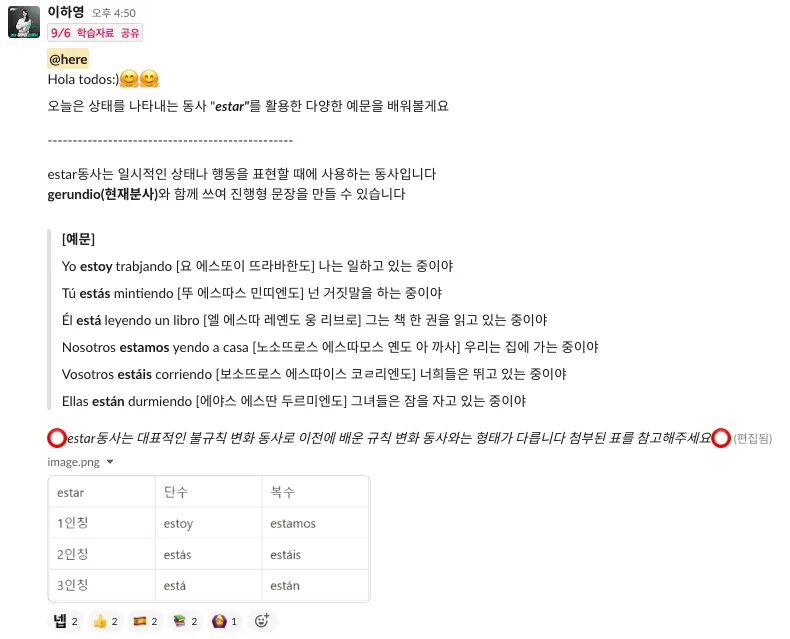 호스트 하영님이 매번 손수 만든 스페인어 공부 자료 🥹