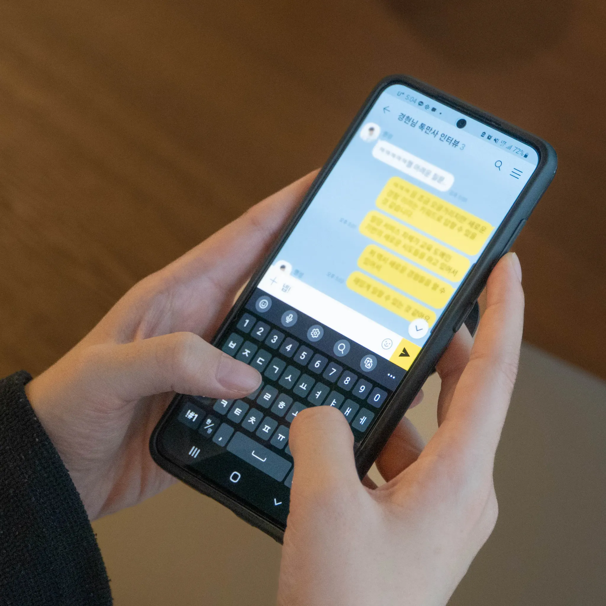 카카오톡은 아이헤이트플라잉버그스 온택트 선생님들이 ‘밀당PT’ 다음으로 가장 많이 쓰는 서비스예요. 학생들과 톡으로 만나기 때문인데요. 반대로 팀원들끼리는 사내 메신저로 소통하다 보니, 외려 톡으로 대화하는 게 어색하더라고요. 너무나 익숙한 매체인데도 새로운 사람과 이야기 나누면 새삼스레 느껴지는 게 재밌지 않나요?