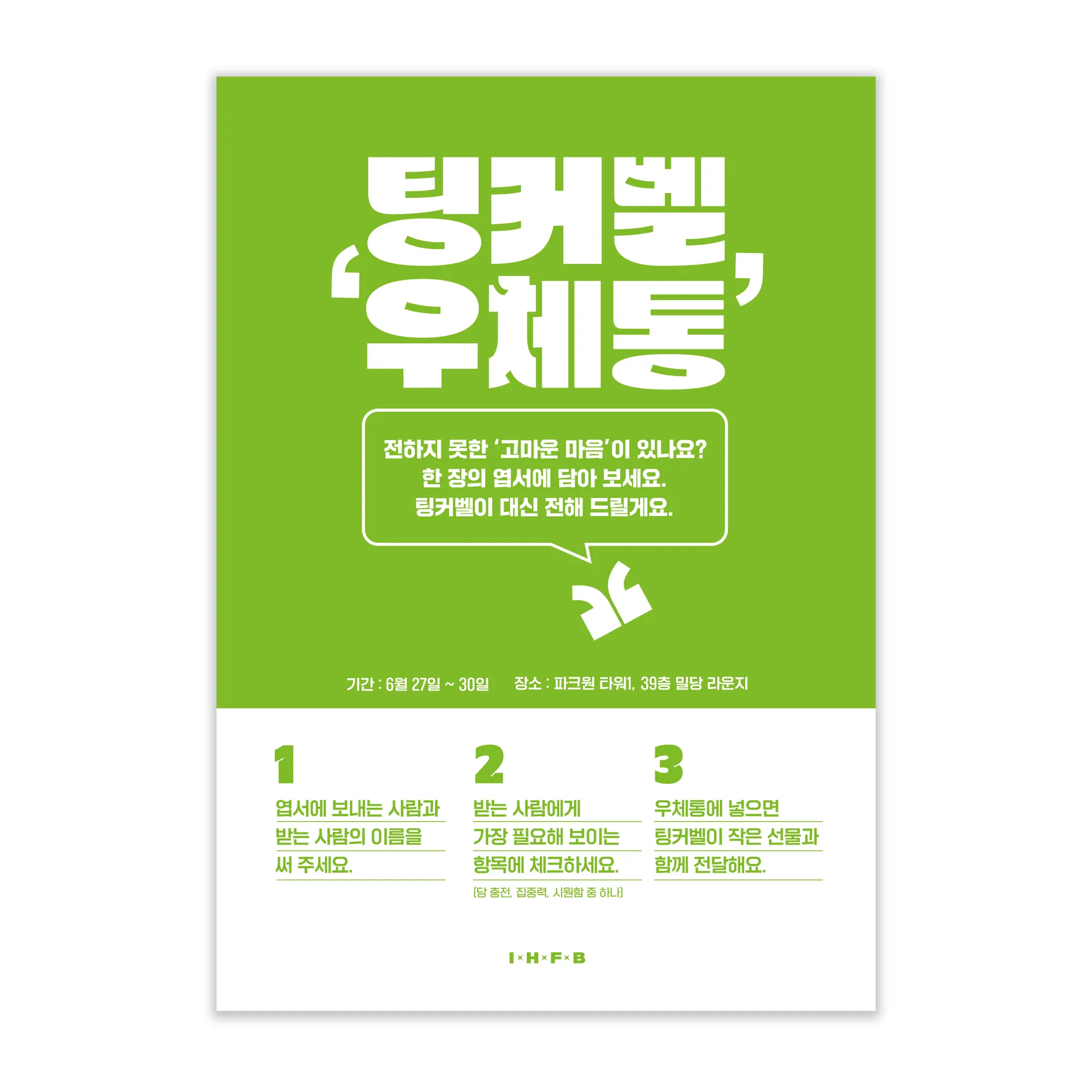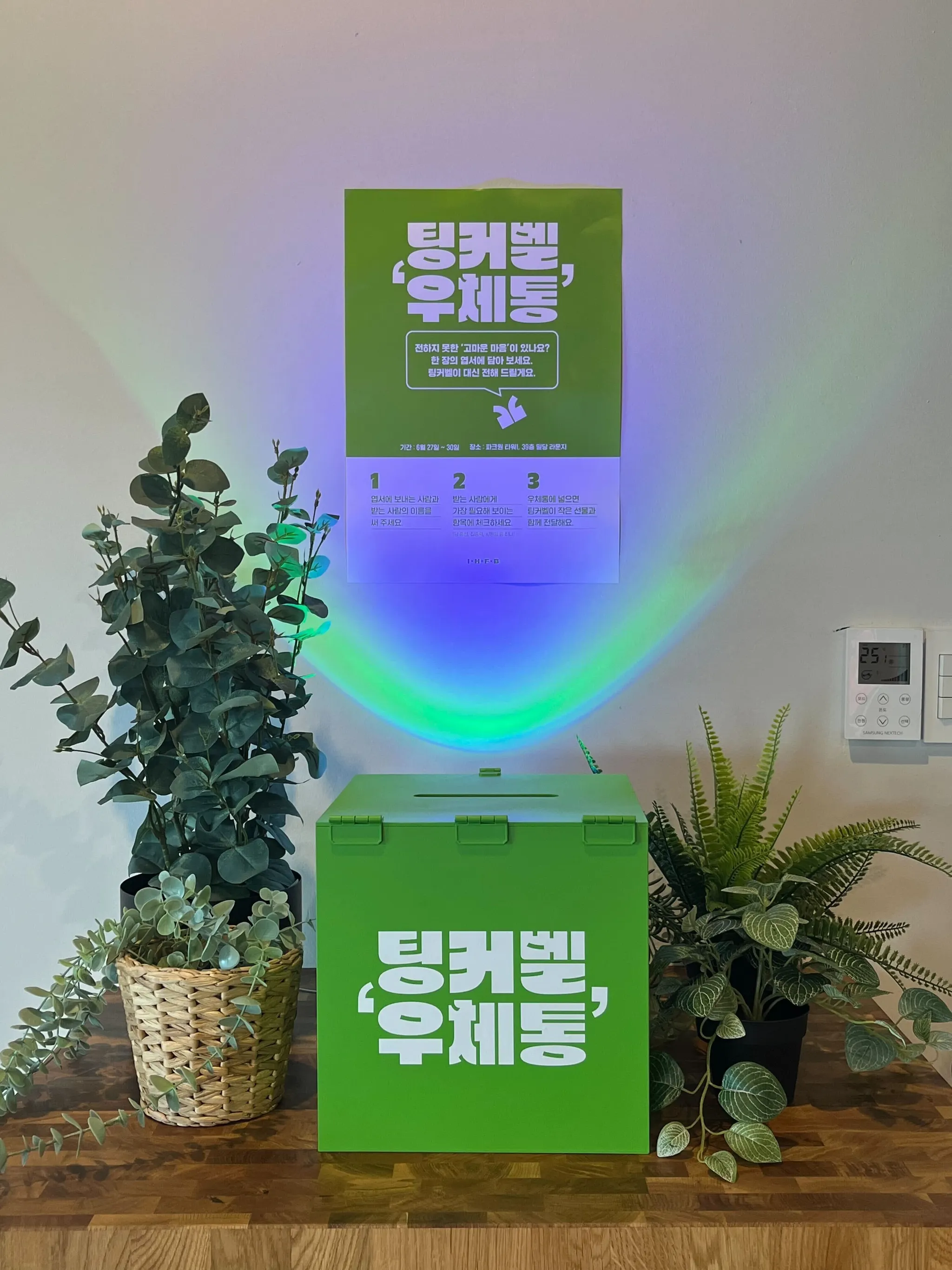“이거다!”하는 생각이 들자, 바로 많은 팀원들이 볼 수 있는 자리에 팅커벨 우체통을 설치했습니다.