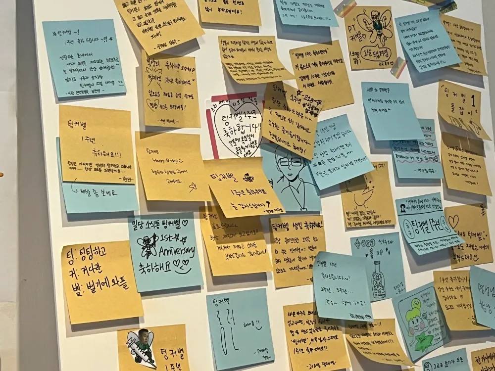 팅커벨 1주년을 축하해 준 팀원들의 메시지입니다. 저를 그려준 분들도 있습니다.
